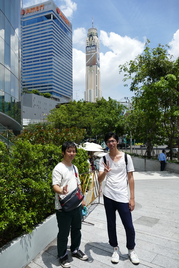 初日、タイで2番目に高い「バイヨークスカイタワー」を背景に撮影。