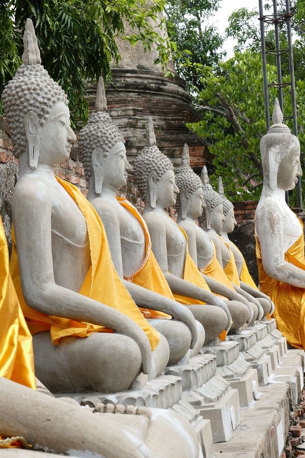 「ワット・ヤイ・チャイ・モンコン」に並ぶ仏像や涅槃仏を見学し、