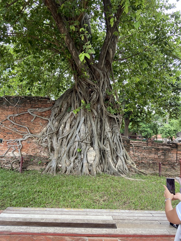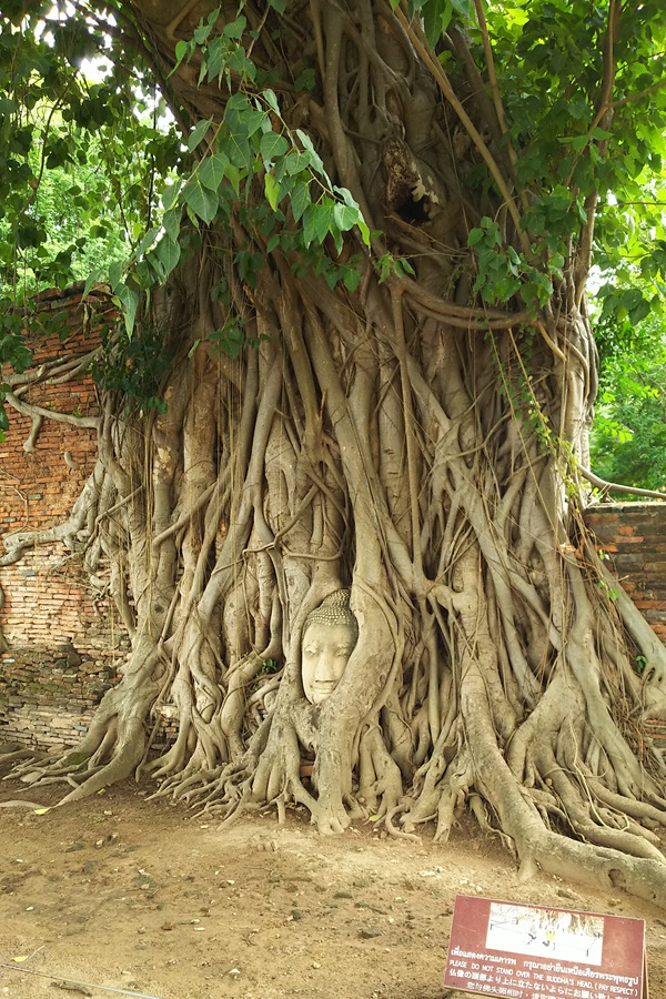 木の根に埋め込まれた仏頭遺跡や、礼拝堂の跡地、そして