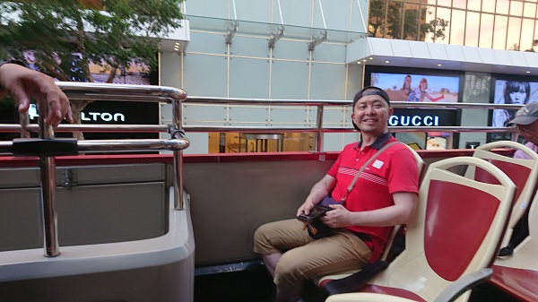 初日の夕方到着、香港の2階建てバスに乗り込み香港の街なみを見学。