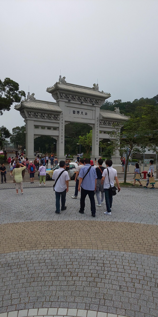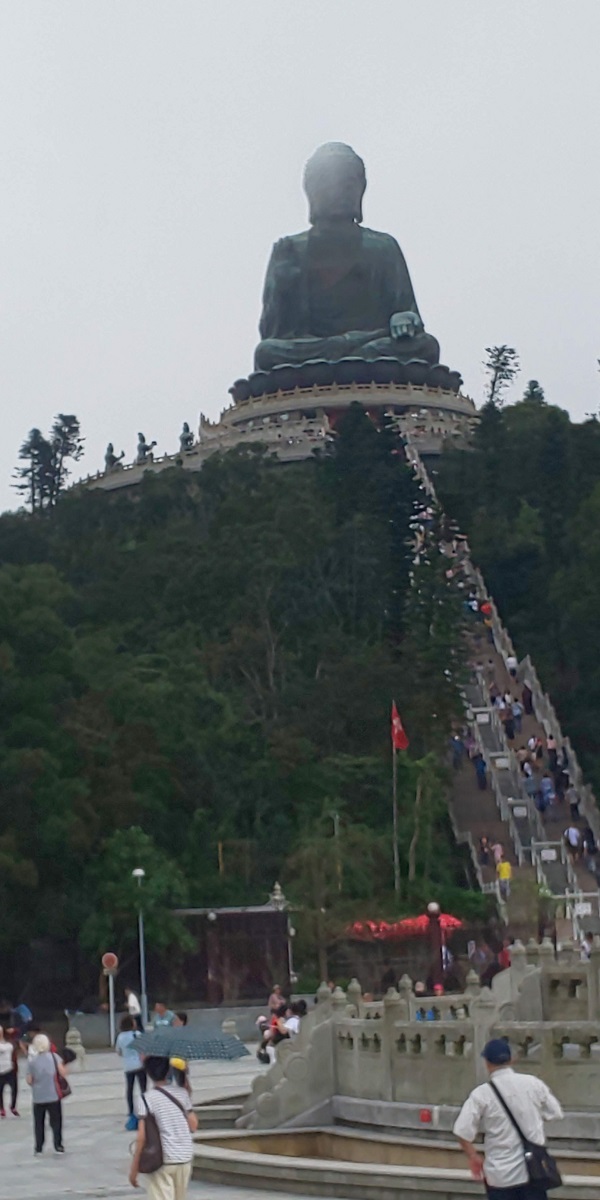 ピアザの門をくぐり、世界最大クラスの屋外大仏として有名なランタオ島の大仏「天壇大仏(てんだんだいぶつ)」を拝礼。