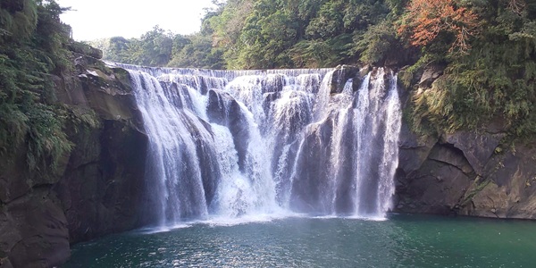 「観爆吊橋」を渡り、約15分歩いた後、「十份の滝」に到着。