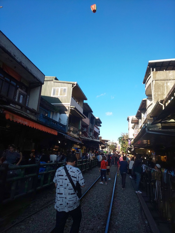 線路ギリギリにお店が並ぶ老街では、ゆっくり通り過ぎる列車を眺めながら、