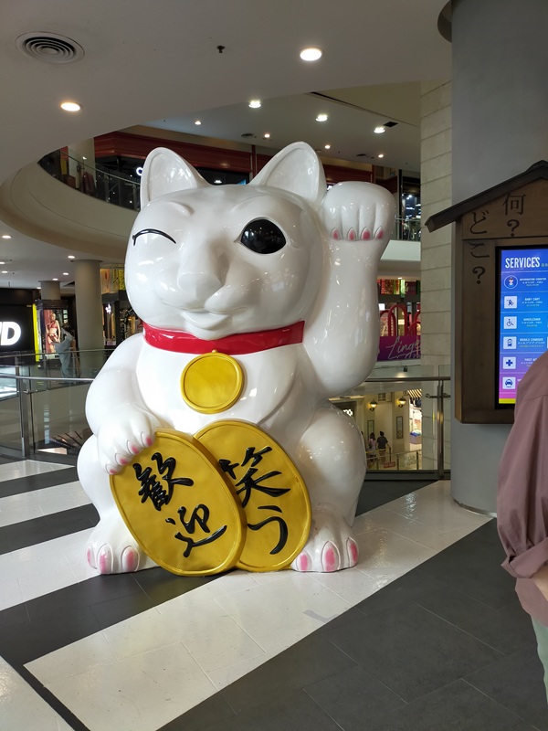 ショッピングモールをふらっと立ち寄ると、巨大な招き猫に歓迎されました。