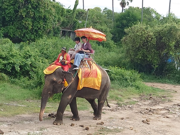 次の日には象に乗って遺跡へ移動。象に乗るのも手慣れたものです。