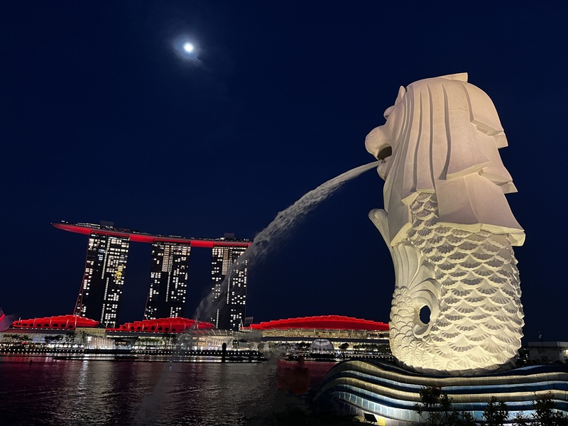 締めくくりに訪れたマーライオン公園から臨むマリーナベイサンズの夜景は、まさに旅のハイライトでした。